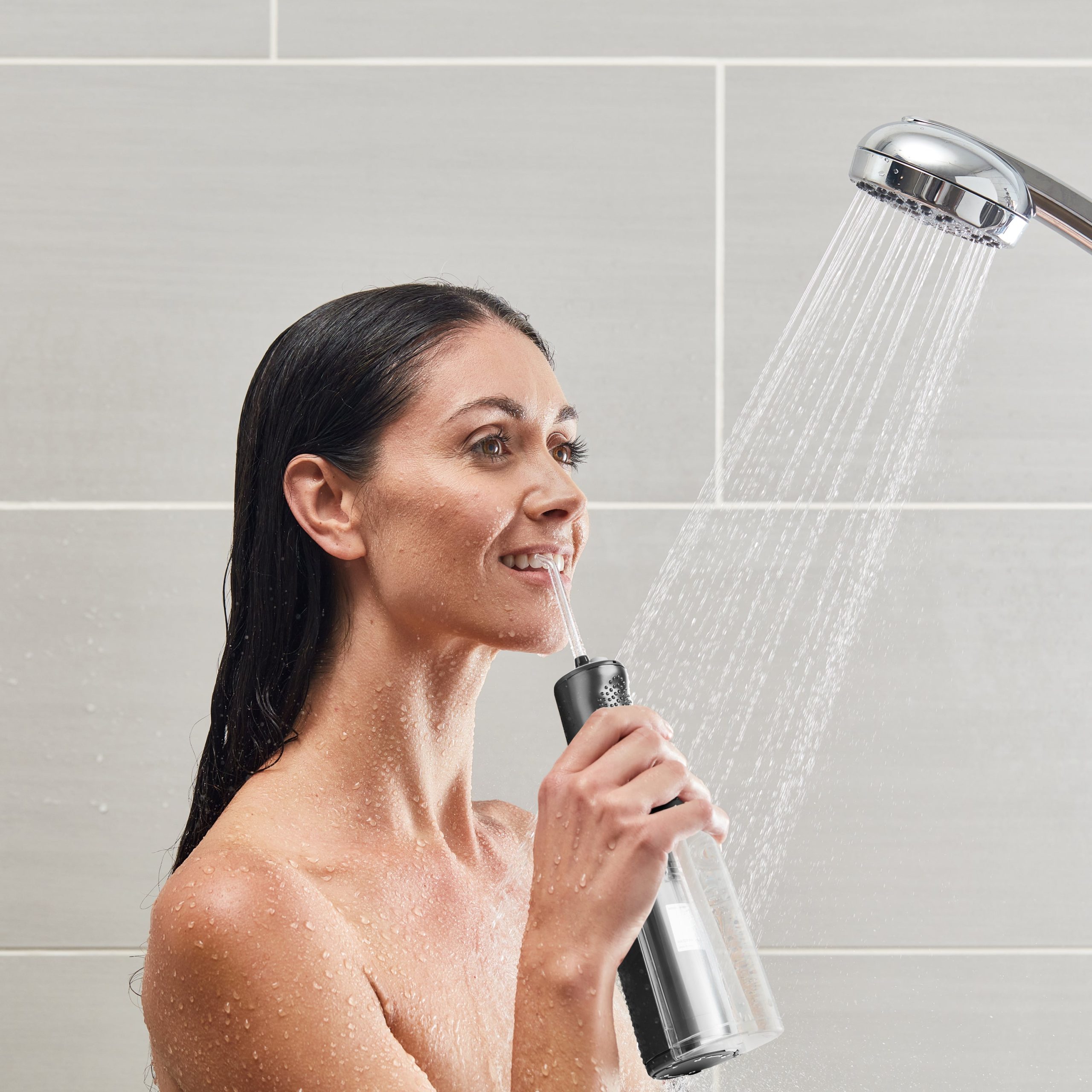 Battery operated and portable, the Cordless Express water flosser is perfect for smaller bathrooms and travel. This handheld water flosser features a lightweight, waterproof design and may be used in the shower.